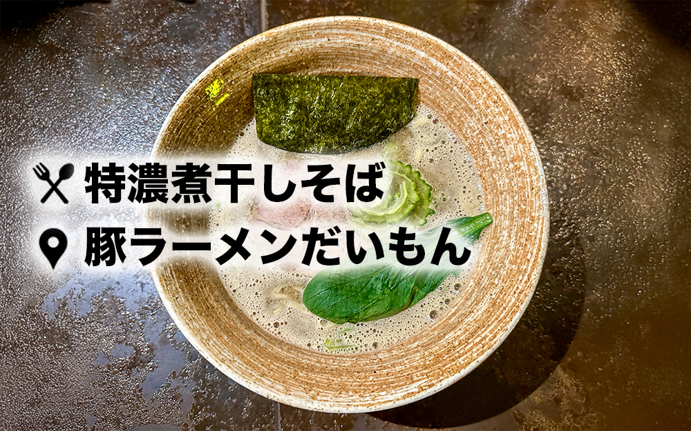 2025年9月26日、豚ラーメンだいもんで期間限定「特濃煮干しそば」が提供されていたので食べてきました。